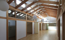 重症心身障害者の自立・自律した地域生活の拠点です。定員7名。アルプスの少女ハイジの山小屋をイメージして、木の梁を各居室と建物内に大胆に配置しました。2013年度グッドデザイン賞を受賞。審査員評は「住宅密集地の中の敷地に対して、巧みな断面計画と無駄のない平面計画によって、有効なコモンスペースと個室空間を生み出している。また、外部空間も、その配置とパーゴラの付設によって、この建築の内部空間とまちを繋ぐ役割を担っている。厳しい条件の中にあって、障害者と地域コミュニティというプログラムに対して、建築的にも優れて提案性のある回答となっている。」
